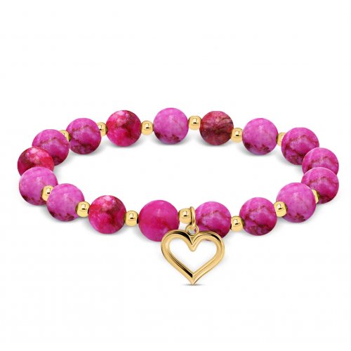 Pink Agate Beads & Heart Charm Stretch Bracelet - Exclusive