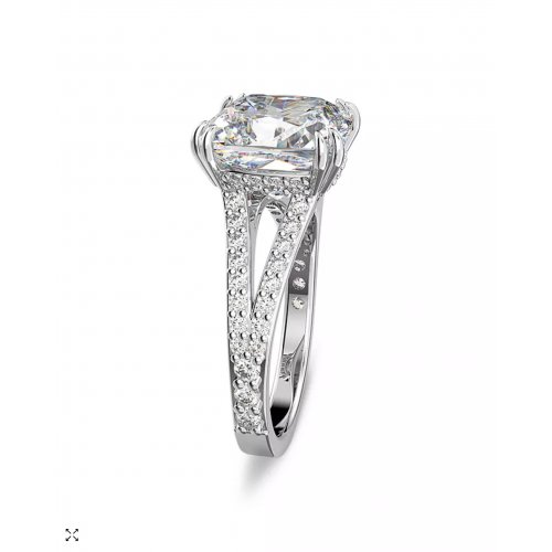 Striking the balance between dramatic and refined, this ring features an exquisite square-cut stone in a double-prong setting.