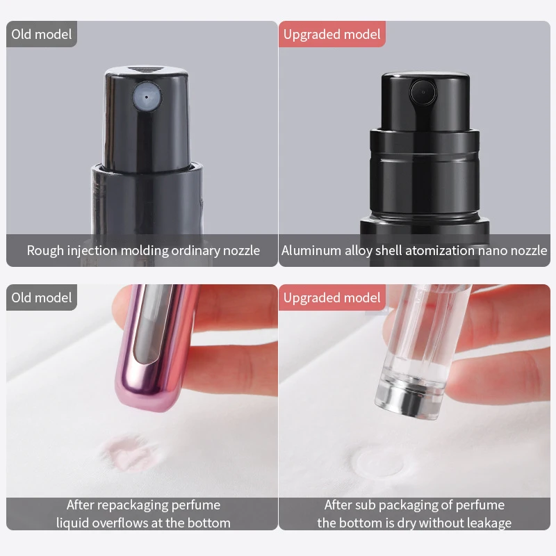 Exquisite craftsmanship and good sealing No liquid leakage when boarding air pressure changes No leakage due to thermal expansion and contraction The flat bottom structure is more stable, easier to fill, does not leak, and is suitable for more perfumes Comply with civil aviation carrying standards and pass the professional negative pressure environment test High-quality push-type nozzle usage: 1 Pull out the spray cap of the perfume 2 Align the water inlet of the inner tank with the perfume nozzle and repeatedly press up and down several times(If your perfume doesn't match it, use a conversion head) 3 Full of four-fifths Product include:1pc spray bottle NOTE: This refillable bottles can match most perfume bottles usually, and just in case, we will gift a set of conversion heads into each package.If you don't know how to use it, please contact us instead of leaving negative feedback directly.