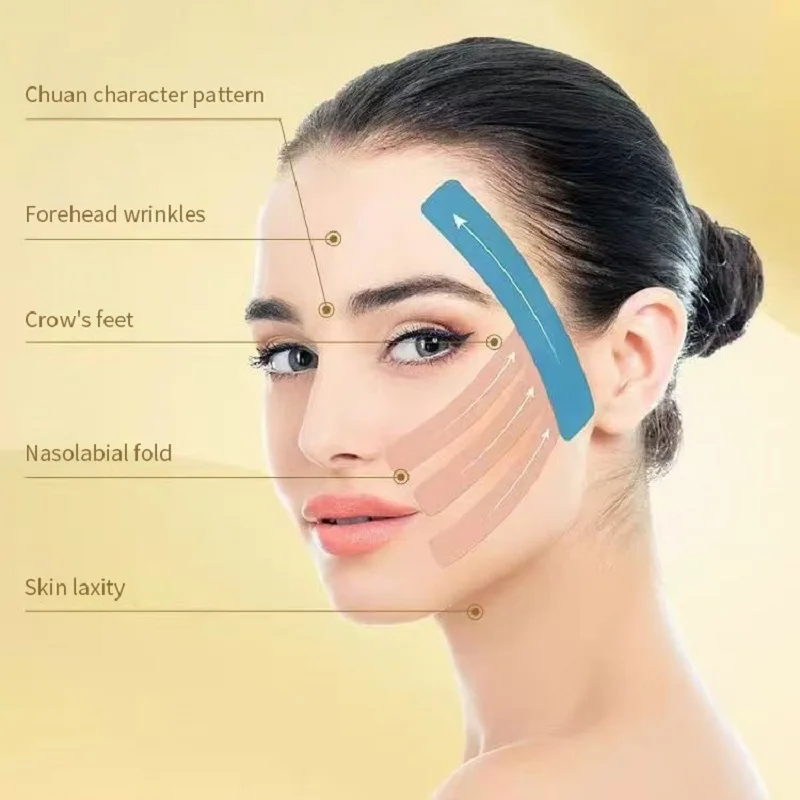 With the Kinesiology tape for face.You can independently, at home, adjust the oval face, smooth age and mimic wrinkles,improve the condition of the skin around the eyes.